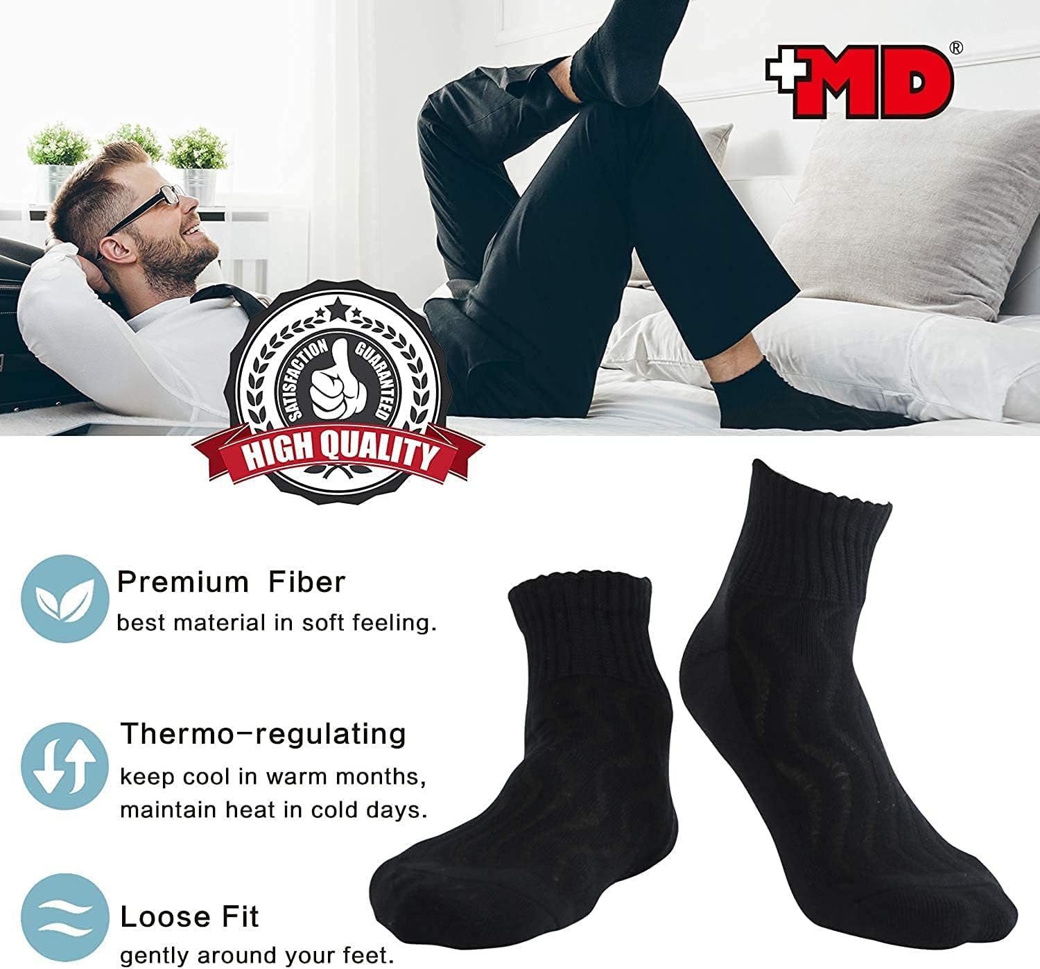 MD’s Diabetic Socks are non-binding and soft-Stretch top gently conforms to your legs and won't restrict circulation for the ultimate comfort and fit. Comfortable cushioning throughout you with extra softness and protection for all day comfort wherever you go. The ultra smooth and non-irritating invisible seam provides all day comfort, is perfect for those with sensitive skin.