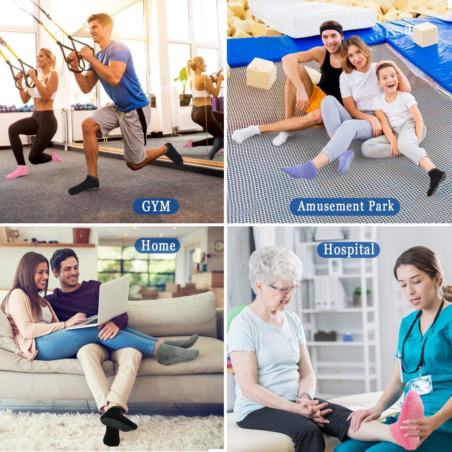 anti Slip Non Skid Slipper Yoga Socks with Grips Sticky Home Hospital Athletic Socks for Adult Women