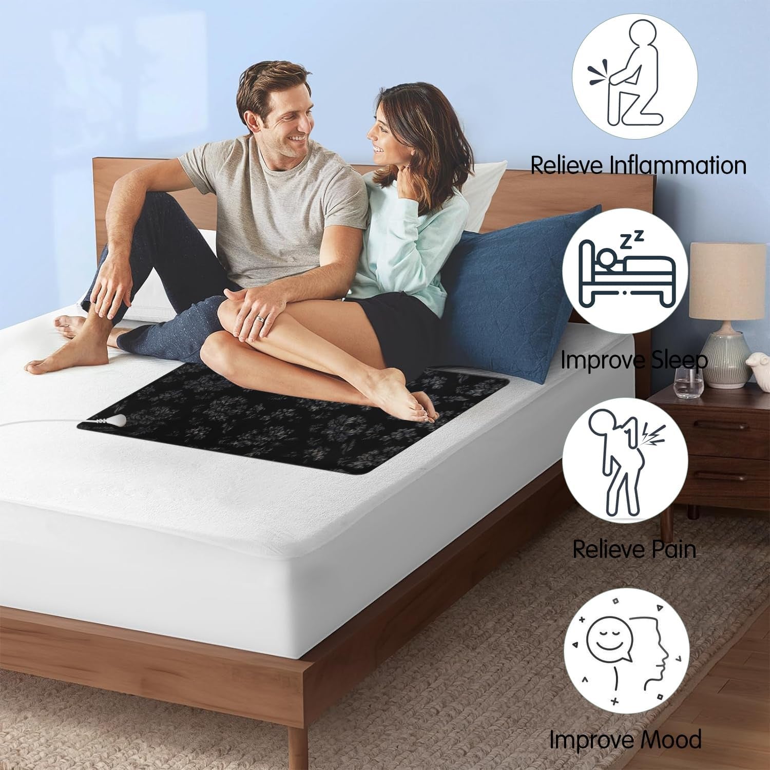 Unique Material for Prime Comfort: Our grounding pad takes advanced technology to promote top material, more beautiful and more superior material with flower patterns. And bottom anti-slip polyester for keeping in place when you're working, sleeping, or practicing yoga