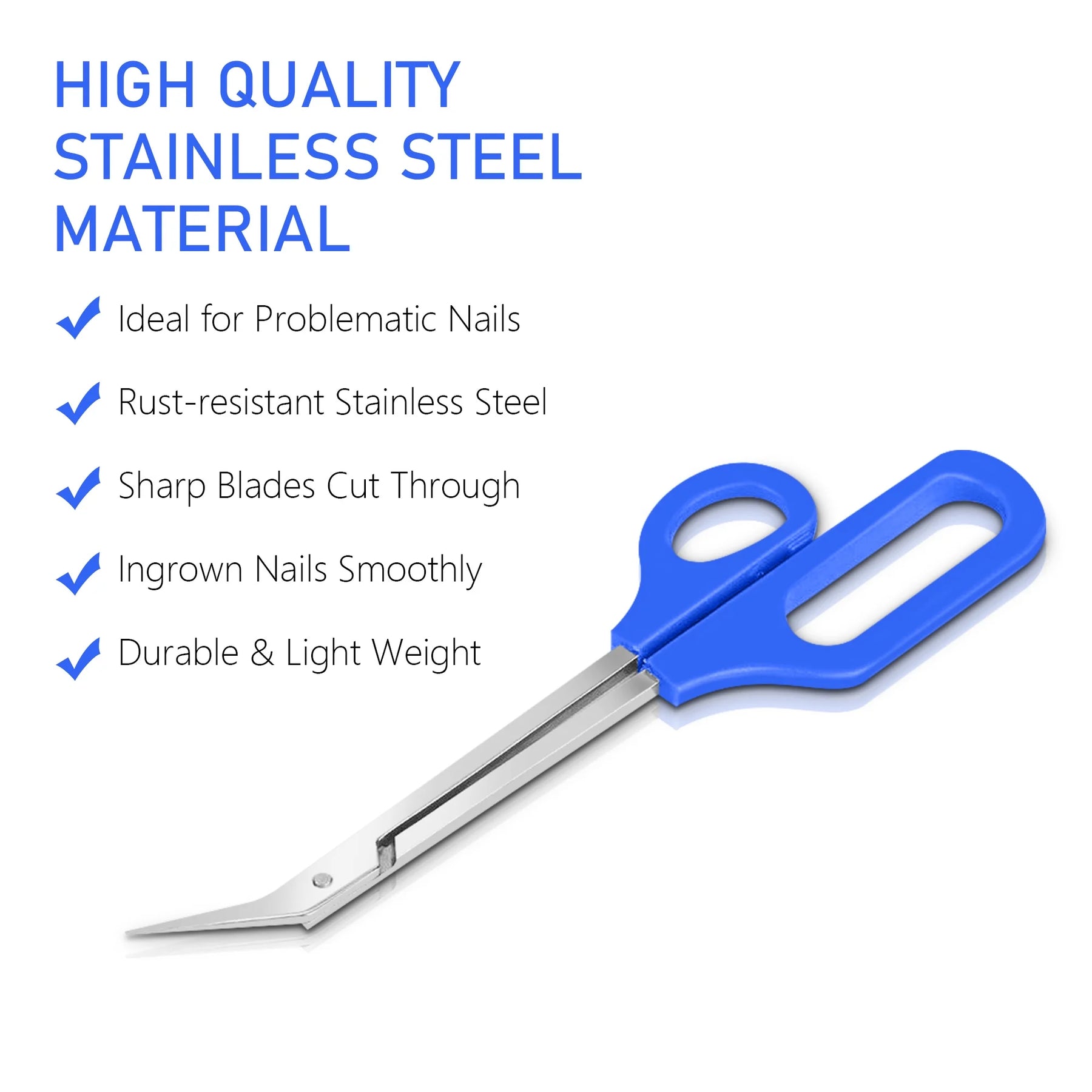 • Designed to assist those who have difficulty in bending down to cut their own toe nails, these ergonomically designed scissors have a long loop handle that enables the whole strength of the hand to be used.