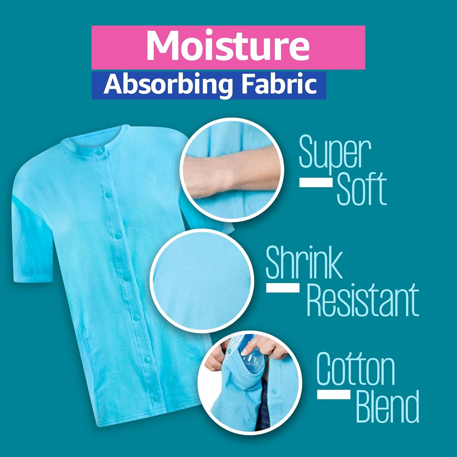 Accommodates post-surgical mobility limitations with easy-snap plastic buttons.