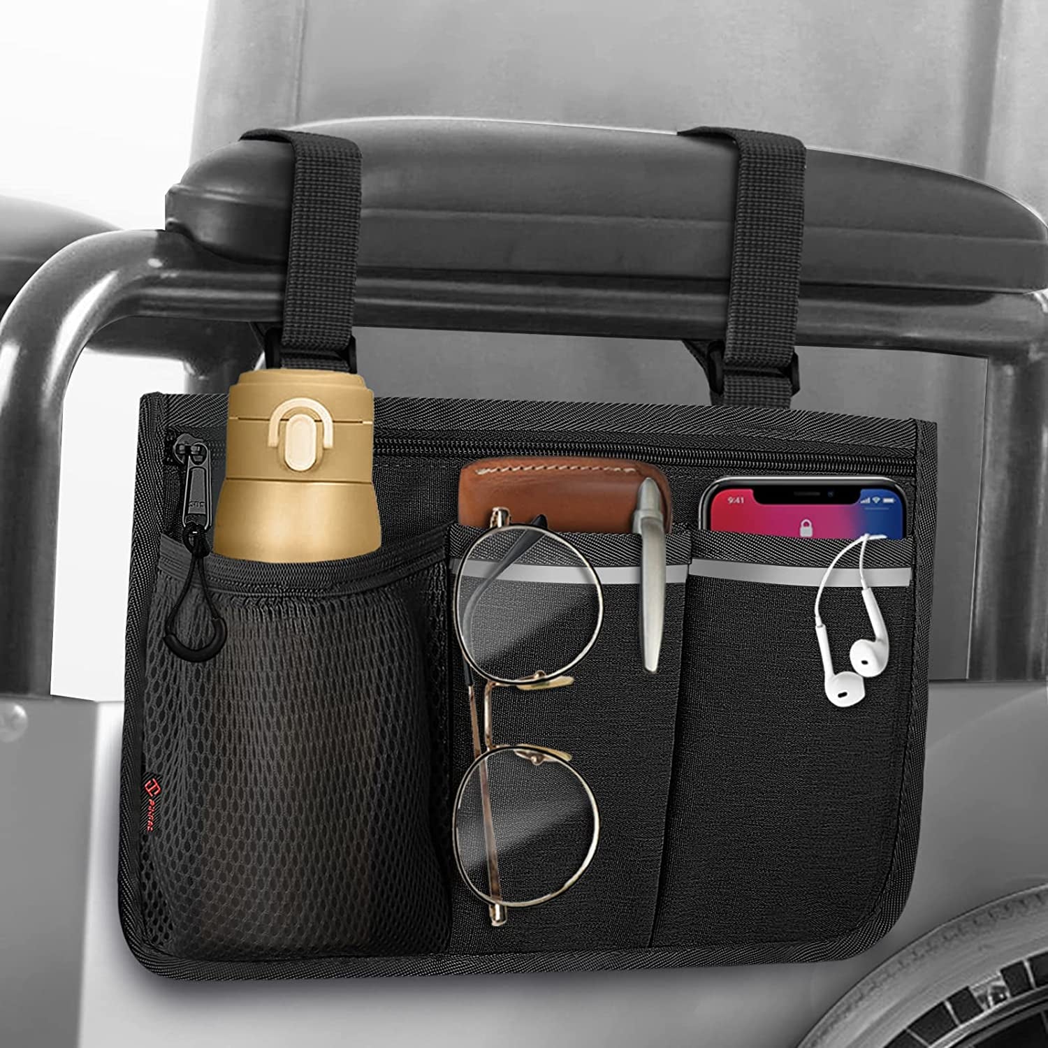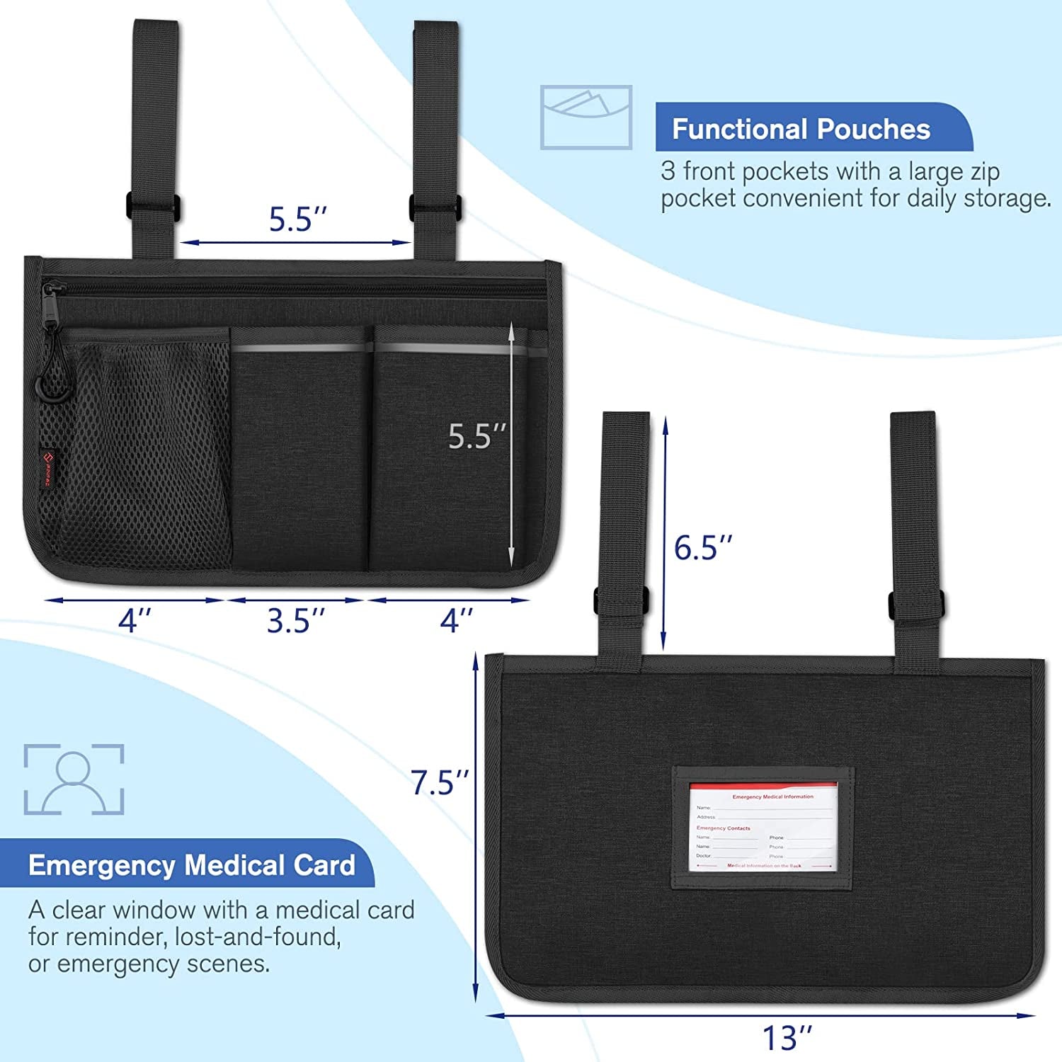 The wheelchair side bags are seamed with reflective stripes for which make you eye-catching at night, safe and convenient.